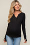 A solid ribbed maternity top featuring long sleeves and a rounded neckline.