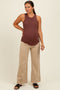 Blue Striped Oversized V-Neck Front Pocket Maternity T-Shirt