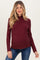 Burgundy Ribbed Mock Neck Ruffle Hem Maternity Long Sleeve Top