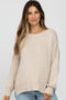 Camel V-Neck Side Slit Cable Knit Maternity Sweater