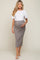 A rib knit maternity skirt featuring a waist tie and a center back slit.