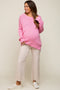A solid hued maternity sweater featuring a funnel neckline, long dolman sleeves and a fitted bottom hem.