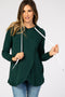 An ultra soft knit maternity/nursing top featuring fleece lining, an adjustable drawstring hood, long sleeves and a layered front for easy access.