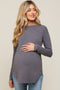 A plaid print maternity long shirt jacket with a collared neckline, button front closure, two front chest pockets and two side pockets.