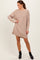 Beige Turtleneck Colorblock Contrast Trim Sweater Dress