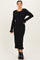 Black Ribbed Knit Ruffle Trim Midi Sweater Dress