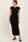 Elevate your wardrobe with this Black Side Knot Tie Short Sleeve Midi Dress, a perfect blend of elegance and comfort. Made from soft, stretchy fabric, this dress features a flattering side knot detail that cinches the waist for a chic silhouette. The short sleeves and midi length offer a versatile, timeless look suitable for both day and night. A subtle side slit adds a touch of allure while ensuring ease of movement. Pair with your favorite heels or sandals for effortless style. Ideal for work, brunch, or evening events, this dress is a must-have staple for any modern closet.