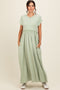 Blue Satin Pleated Bodice Puff Sleeve Midi Dress