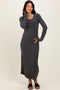 Brown Ribbed Long Sleeve Half Button Up Fitted Dress