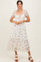 Brown Rose Print Mesh Overlay Ruched Midi Dress