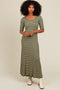 Brown Ruffle Mock Neck Long Sleeve Midi Dress