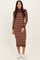 Elevate your wardrobe with this Brown Striped Turtleneck Midi Sweater Dress. Featuring a cozy ribbed knit fabric with horizontal beige stripes, this dress offers a flattering, figure-hugging fit that is both stylish and comfortable. The classic turtleneck and long sleeves provide warmth and a chic silhouette, making it perfect for cooler days. Its midi length adds a touch of elegance, while the casual striped design keeps it versatile for day-to-night wear. Pair with sneakers for a relaxed look or boots for a polished finish. Ideal for effortless, modern style all season long.