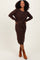 Brown Waffle Knit Sash Tie Midi Sweater Dress