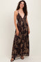 Burgundy Floral Deep V-Neck Back Cutout Maxi Dress