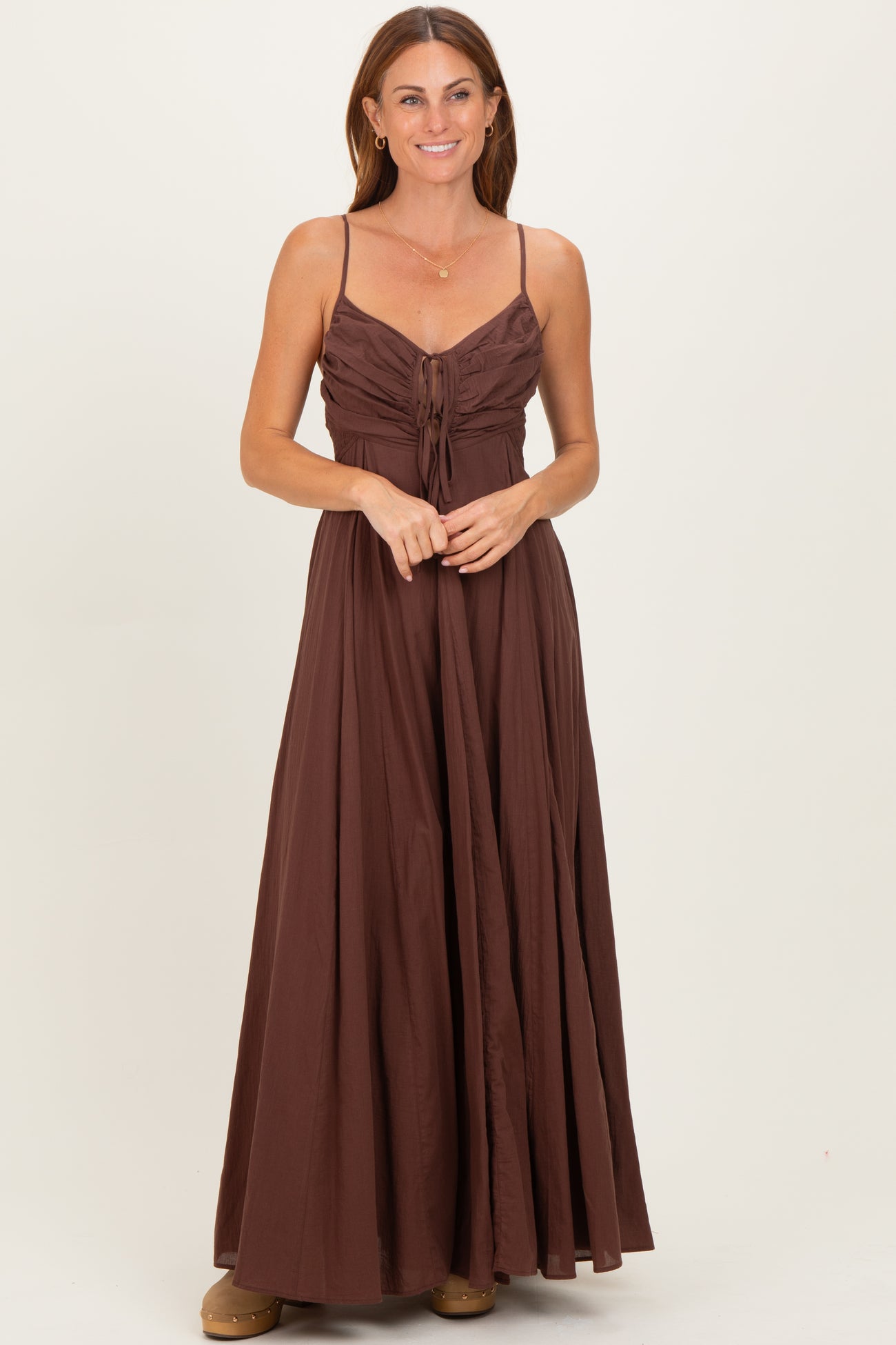 Elevate your style with our Burgundy Gathered Tie Front Maxi Dress, a perfect blend of elegance and comfort. This stunning maxi dress features a flattering gathered bodice with a charming tie-front detail, accentuating your waist while adding a touch of femininity. Crafted from lightweight, breathable fabric, it flows beautifully for effortless movement. Adjustable spaghetti straps ensure a personalized fit, making it ideal for day-to-night wear. Whether you're heading to a summer wedding or a casual brunch, this versatile burgundy dress will keep you looking chic and confident. Pair it with your favorite sandals or heels to complete the look.