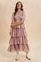 Burgundy Pleated Satin Dolman Sleeve Maxi Dress