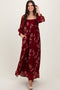Burgundy Wrap Front Empire Waist Maxi Dress