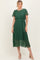 Embrace effortless elegance with our Forest Green Leaf Print Pleated Midi Dress. Featuring a delicate leaf pattern on a rich forest green backdrop, this dress is designed with soft flutter sleeves and a flattering round neckline. The pleated skirt adds graceful movement, while the self-tie waist cinches for a beautifully defined silhouette. Crafted from lightweight, breathable fabric, it offers all-day comfort and style. Perfect for garden parties, casual outings, or a day at the office, this versatile midi dress is a must-have addition to your wardrobe. Pair with nude heels or sandals to complete your look.