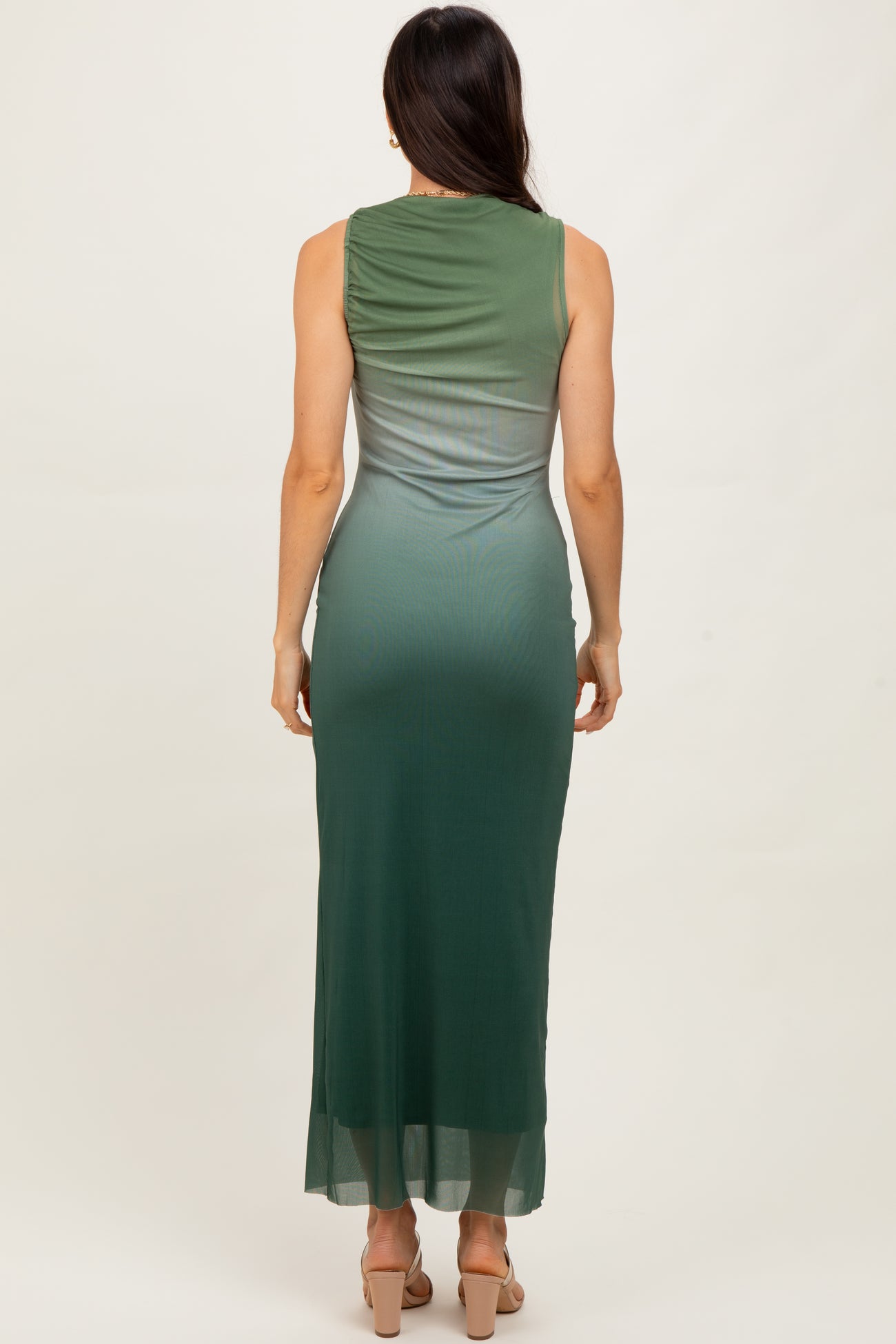 Forest Green Ombre Mesh Ruched Sleeveless Midi Dress