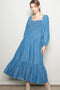 Embrace effortless style with our Light Denim Washed Sweetheart Maxi Dress. Crafted from soft, lightweight denim, this dress features a flattering sweetheart neckline and smocked bodice for a comfortable and fitted look. The long puff sleeves with elastic cuffs add a romantic touch, while the tiered maxi skirt brings flowy elegance to every step. Perfect for casual outings or weekend getaways, this versatile dress pairs beautifully with sneakers or sandals. Complete your wardrobe with this timeless piece that balances laid-back cool and feminine charm. Available in multiple sizes. Machine washable for easy care.