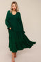 Mocha Floral Embroidered Puff Sleeve Midi Dress
