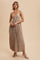 Mocha Floral Pleated Back Cutout Maxi Dress