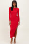 A gauze midi dress featuring a collared neckline, 3/4 length puff sleeves, a button down front and an adjustable belted tie at the waist.