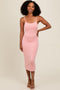 Olive Striped Short Sleeve Side Slit T-Shirt Midi Dress
