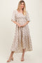 Plum Floral Smocked Hi-Low Puff Sleeve Maxi Dress
