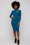 A French terry cloth dress featuring a rounded neckline, cuffed short sleeves, side pockets, and a rounded hem.