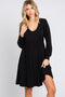 A printed midi dress with a round neckline, smocked bust, 3/4 sleeves and side pockets.