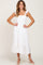 Details A textured midi dress featuring a smocked top, flutter straps, and a gathered bottom tier. Skirt is lined to prevent sheerness. Content + Care