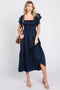 A rib knit midi dress featuring a scoop neckline and long sleeves.