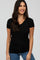 Black V-Neck Ruched Side Top