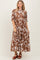 Embrace effortless style with our Brown Leaf Print Tiered Midi Dress. Crafted from lightweight fabric, this dress features a beautiful earthy leaf pattern set against a neutral background, perfect for any season. The tiered design adds volume and movement, while the midi length offers a flattering silhouette. With a subtle collar and 3/4 sleeves that gather at the cuffs, this dress combines comfort and chic. Pair it with sandals for daytime or dress it up with heels for evening outings. Ideal for casual days, garden parties, or weekend getaways. Elevate your wardrobe with this breezy, nature-inspired piece!