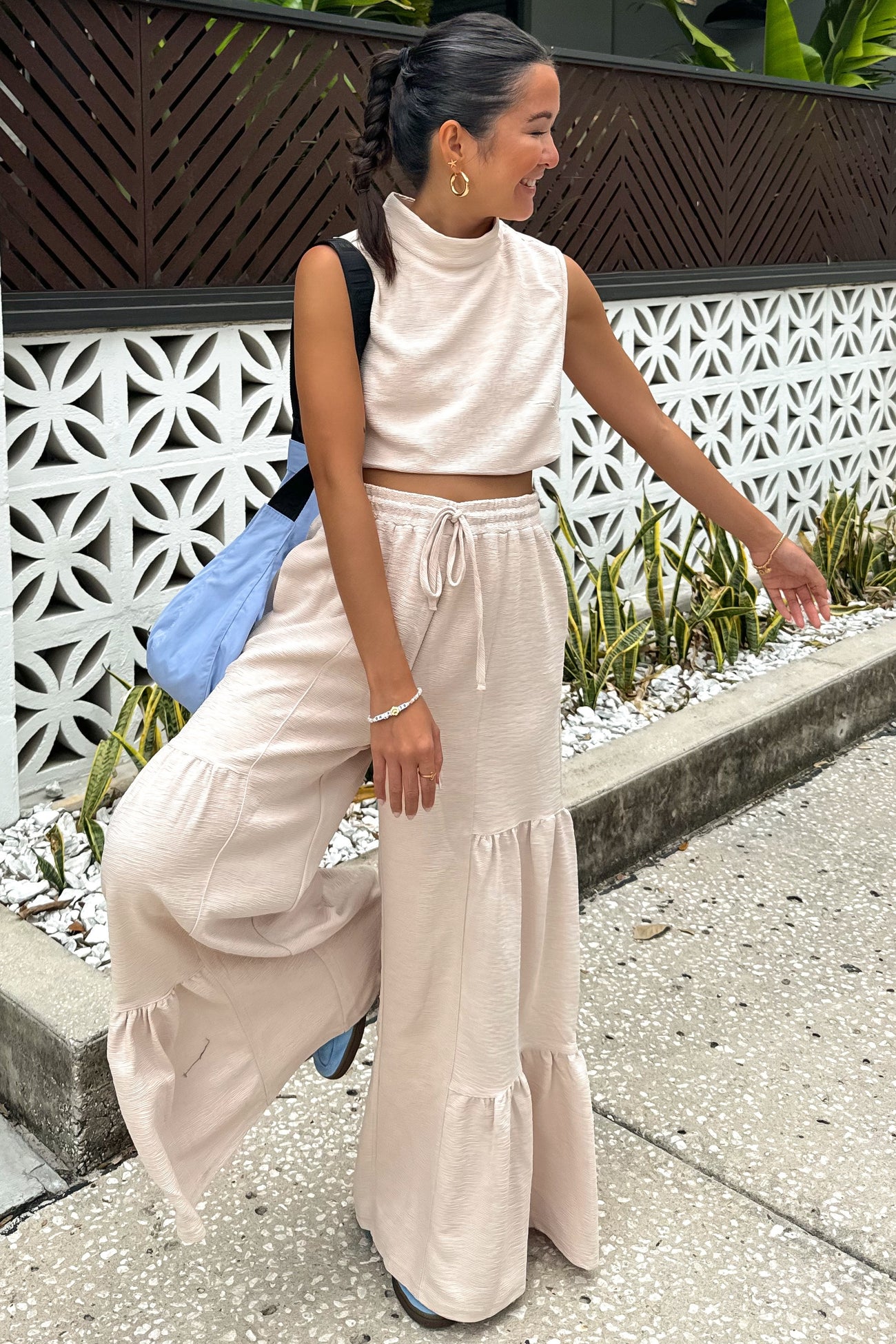 Sand Texture Knit Mock Neck Crop Top And Pants Set