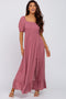 Ivory Floral Smocked Front Ruffle Hem Maxi Dress