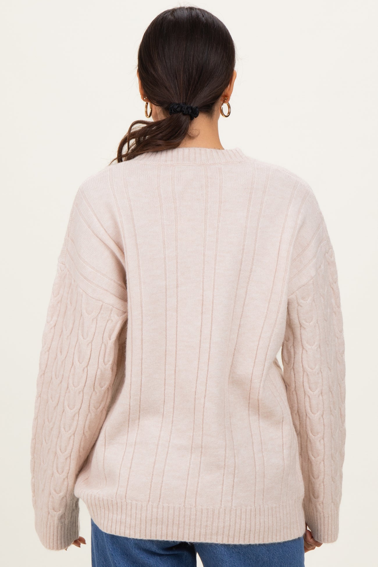 Beige Braid Knit Pattern Soft Fluffy Sweater Top
