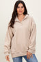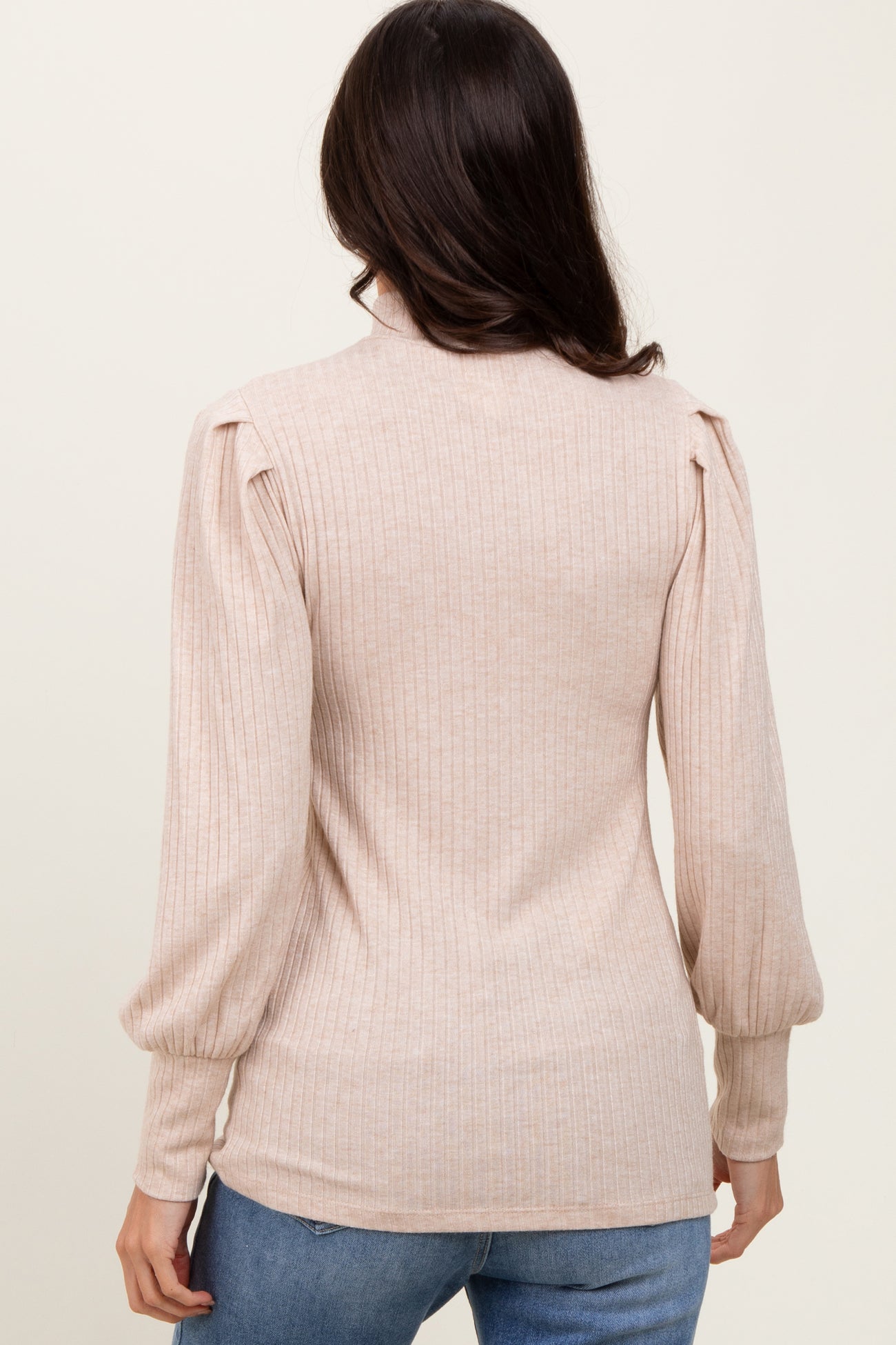 Beige Ribbed Mock Neck Bubble Sleeve Top