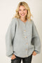 Beige Solid Ribbed Brushed Long Sleeve Button Down Round Neck Top
