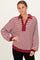 Elevate your casual wardrobe with this Burgundy Striped Oversized Collared Pullover Top. Featuring bold, horizontal stripes in rich burgundy and off-white, this top blends classic style with modern comfort. The oversized fit and dropped shoulders offer a relaxed silhouette, while the deep burgundy collar and half-button placket add a polished touch. Crafted from soft, breathable fabric, it’s perfect for layering on cooler days or wearing solo for easy, everyday style. Pair it with your favorite jeans or leggings for a chic, laid-back look that effortlessly transitions from lounging at home to casual outings. Must-have comfort meets timeless design in one versatile pullover.