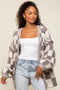 A fitted top featuring front buttons, long sleeves and a v-neckline.