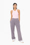 A solid set with a sleeveless tank with raw edge detail and pants with pockets and elastic waistband.