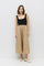 Beige Black Contrast Knit Poplin Sleeveless Midi Dress
