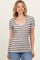 Elevate your everyday style with this Beige and Black Stripe Short Sleeve Top. Crafted from a soft, ribbed knit fabric, it offers a comfortable and flattering fit that hugs your curves in all the right places. The classic horizontal stripes add a timeless touch, while the rounded scoop neckline brings a feminine finish to this versatile piece. Perfect for pairing with your favorite jeans or skirts, this top is a must-have for casual outings or laid-back weekends. Easy to mix, match, and layer, it’s a wardrobe essential that combines comfort and style effortlessly. Available in multiple sizes for the perfect fit.