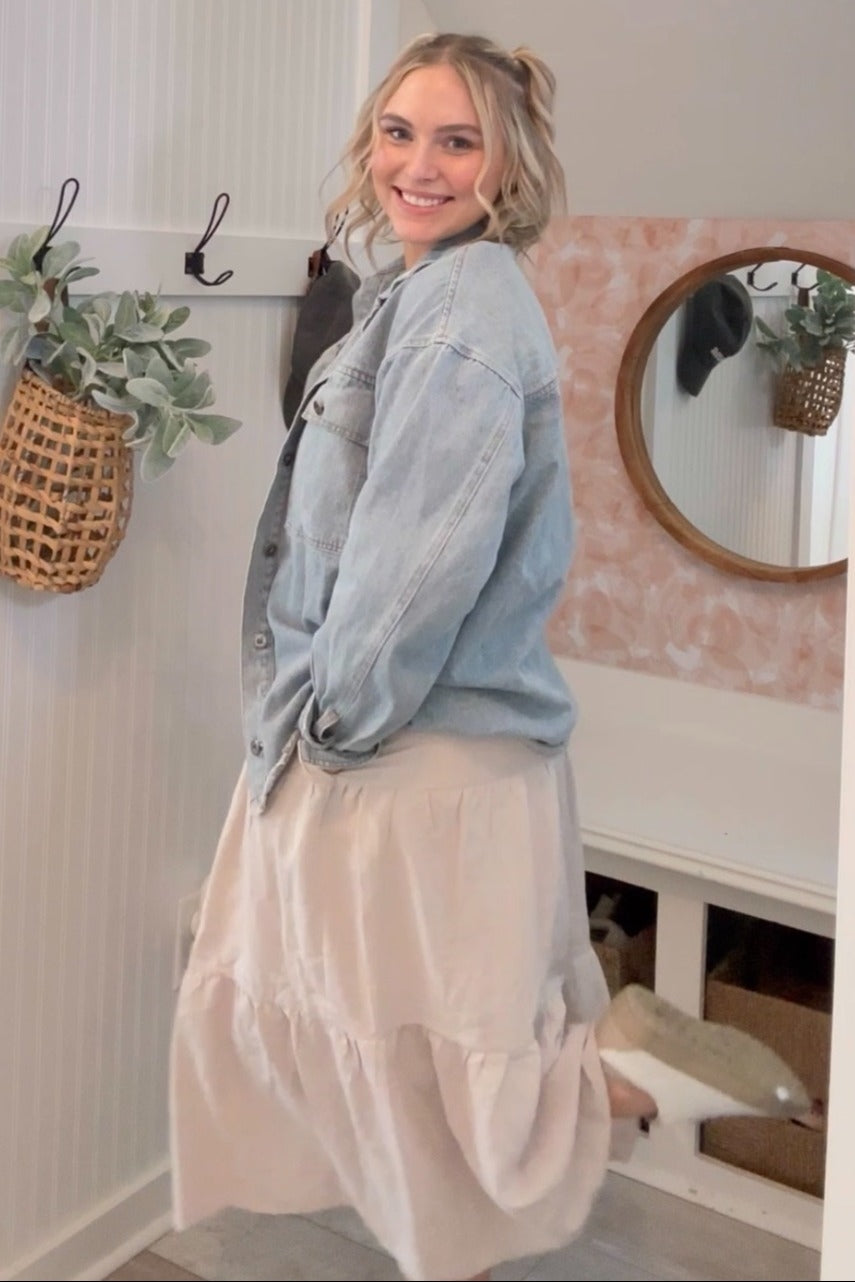 Beige Bow Strap Tiered Midi Dress