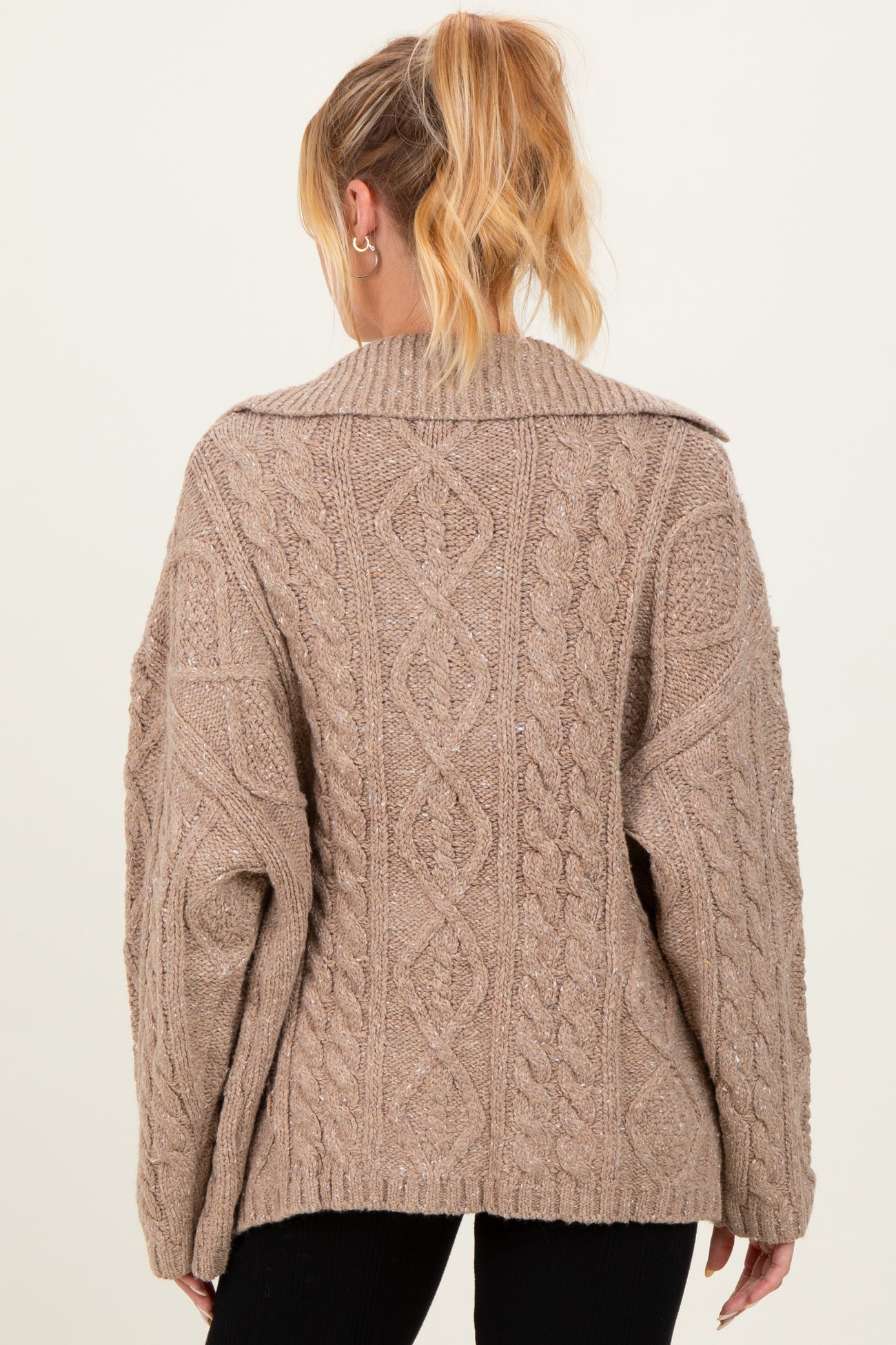 Beige Cable Knit Collared Maternity Button Up Cardigan