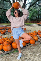 A chenille knit sweater featuring a crew neckline, side slits and long balloon sleeves.