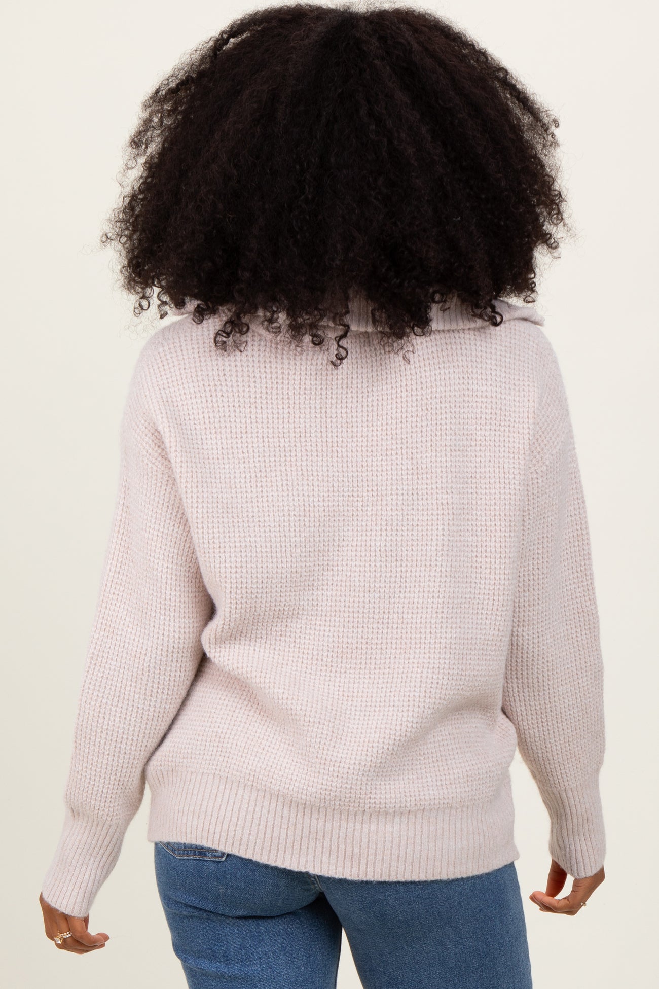 Stay cozy and stylish in our Beige Half Zip Pullover Sweater. Crafted from a soft, textured knit fabric, this sweater features a relaxed fit with ribbed cuffs and hem for added comfort. The half-zip neckline adds a modern touch and allows for easy layering, perfect for transitioning between seasons. Its versatile beige color pairs effortlessly with jeans or leggings for a chic, casual look. Whether you're at home or out and about, this pullover is a must-have staple for your wardrobe. Embrace warmth and effortless style in one timeless piece. Available in multiple sizes for the perfect fit.