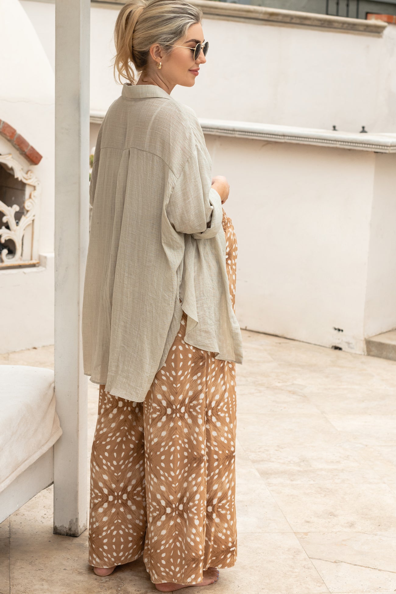Beige Lightweight Sheer Button Down Maternity Blouse